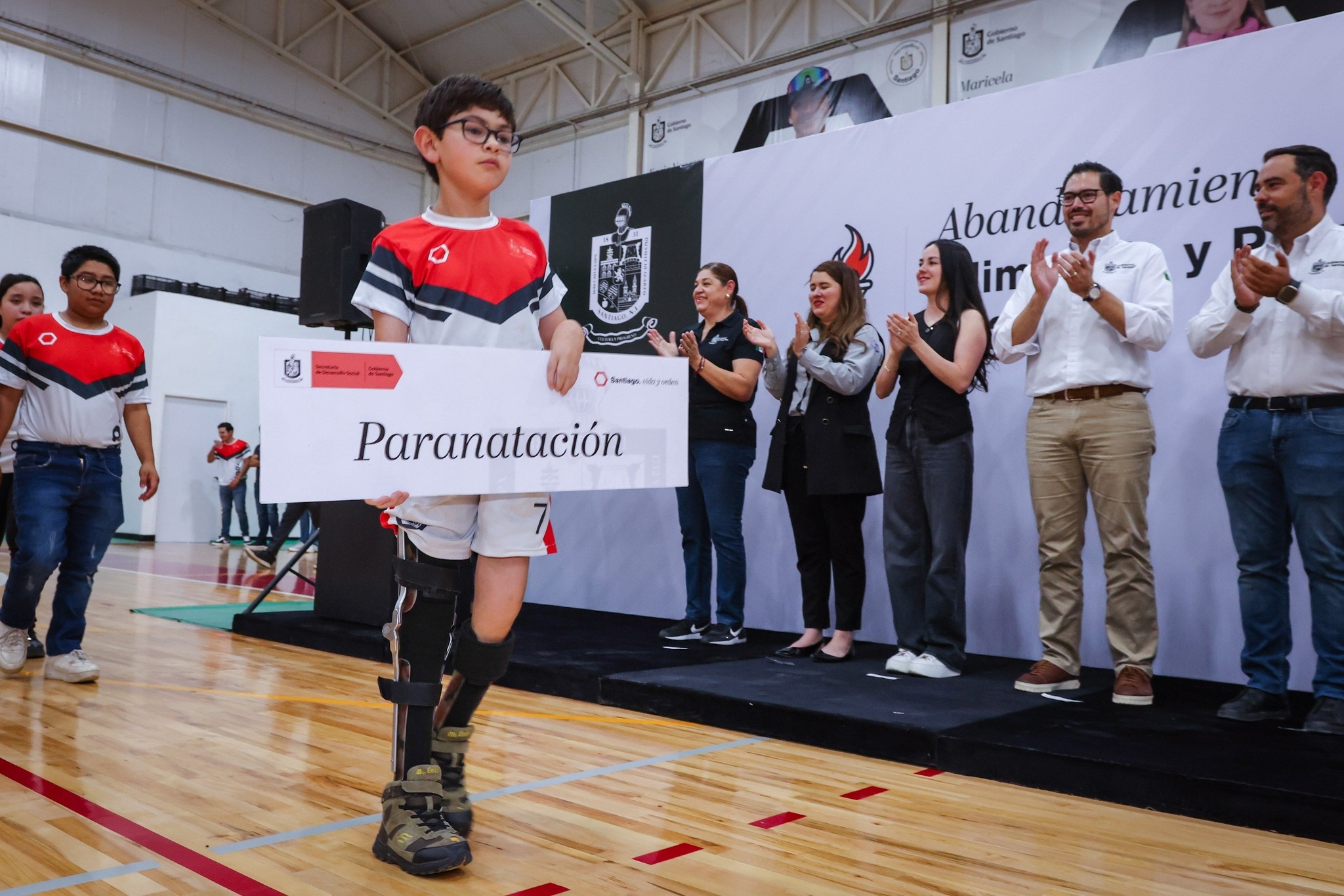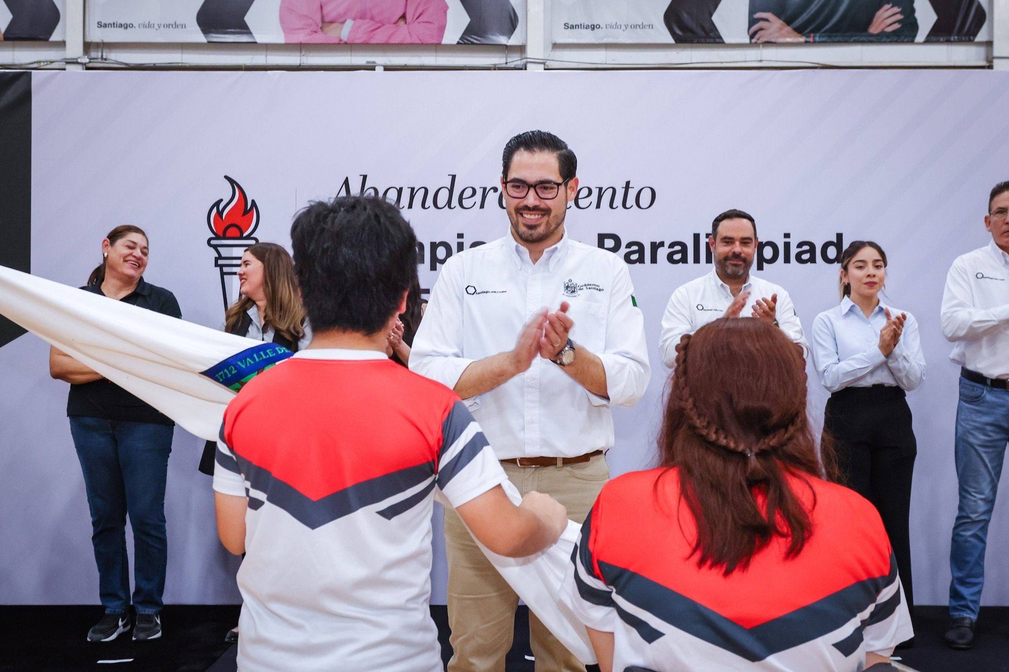 Durante el abanderamiento estuvieron presentes la Mtra. Olga Amalia Villalón Toba, Presidenta de DIF Santiago; el Lic. Rafael Almaguer de la Peña, Secretario de Desarrollo Social; la Lic. Yeny L. Hinojosa Quezada, Directora de Atención e Inclusión a Personas con Discapacidad, y el Lic. Rodolfo Pérez Cruz, Director de Deportes.
