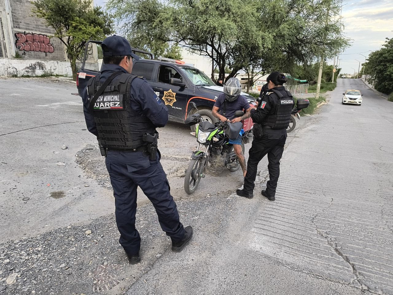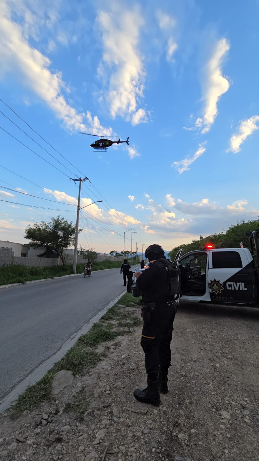 Elementos de la Secretaría de Seguridad y Protección Ciudadana de Juárez, en coordinación con la Agencia Estatal de Investigaciones y Fuerza Civil, implementaron un operativo simultáneo aéreo y terrestre con el apoyo del helicóptero de Fuerza Civil, en las colonias Los Huertos, Residencial Los Huertos, Praderas de Oriente, Bosques del Seminario y Residencial Las Quintas.