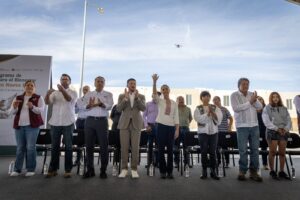 Con este acto la Jefa del Ejecutivo federal concluyó una gira de trabajo de dos días por Nuevo León, en donde inauguró un CEBETIS en García y supervisó la obra de construcción del Hospital General de Especialidades en Santa Catarina.