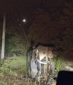 Elementos de Protección Civil de Montemorelos al mando del Director Héctor Parada, brindaron atención a un accidente vial tipo volcadura registrado sobre la carretera a General Terán, altura del El Ranchito.