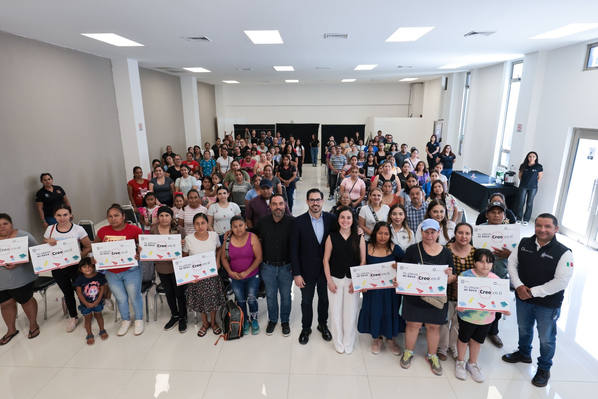 La primera Beca “Creo en Ti”, para cubrir el ciclo escolar 2023-2024 se entregó a 105 familias; en agosto del 2024 se cubrió el ciclo 2024-2025 para 107 beneficiarios, y para el periodo 2025-2026 se está ayudando a 109 estudiantes.