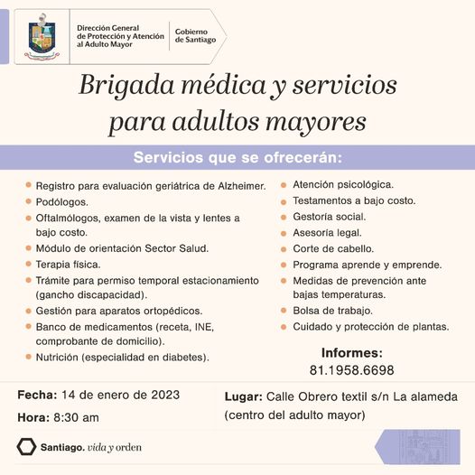 Programación/enero 12, 2023/766 views /santiago Brigada médica y servicios para adultos mayores Santiagoshare on:FacebookTwitterEmailSend to Email Address:Your NameYour Email AddressEmail check failed, please try againCancel Tags:santiago previous articleApoyan a la Economía y Salud a las familias de Juárez con los Programas Mercado de la gente y Ver Bien Para Vivir Mejor Juáreznext articleTe compartimos la siguiente información, dirigida a las beneficiarias del programa estatal de despensas ASAPAP: Para solicitar más información, deberás comunicarte al: 📞826 688 1715Related PostsNoticias/abril 29, 2023 La brigada de atención bucal Sonrisas SanasNoticias/abril 29, 2023 INVERTIRÁ SANTIAGO 150 MDP EN OBRAS DURANTE EL 2023
