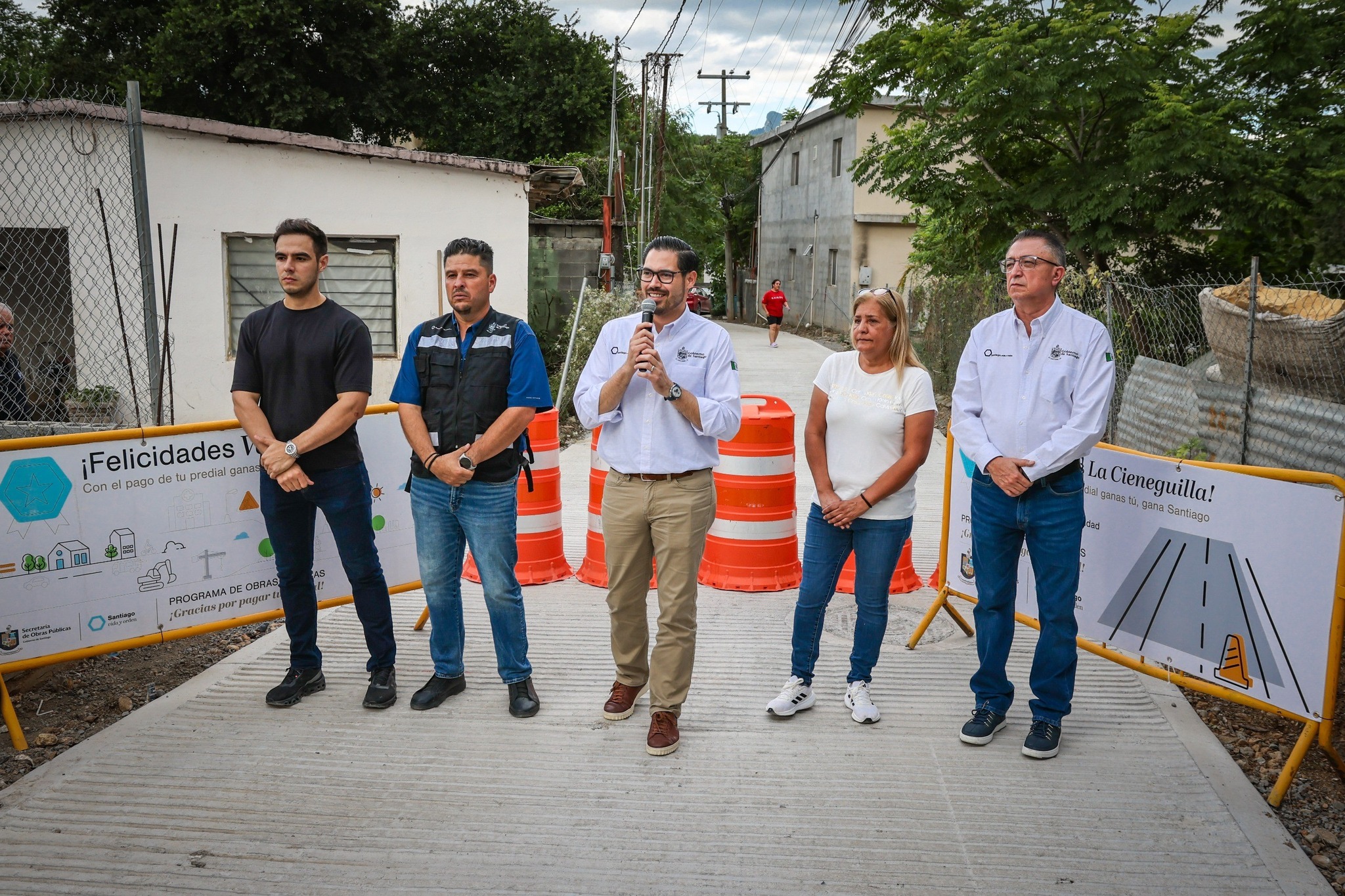 Como parte de sus compromisos para elevar la calidad de vida de los ciudadanos, y el desarrollo de las comunidades, el Presidente Municipal de Santiago, David de la Peña Marroquín, entregó a los vecinos de La Cieneguilla la pavimentación de la calle Ignacio Ramírez, que beneficia directamente a más de 150 habitantes.