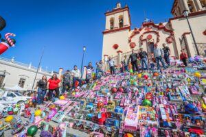 A pie, en carro o en camioneta, la generosidad llegó hasta la Plaza Ocampo de la Villa de Santiago, donde se desbordó en la forma de más de dos mil juguetes recolectados en el Juguetón 2024, organizado por el Gobierno Municipal y el DIF Santiago, que encabezan el Alcalde, David de la Peña Marroquín, y su esposa Olga Amalia Villalón Toba, respectivamente.