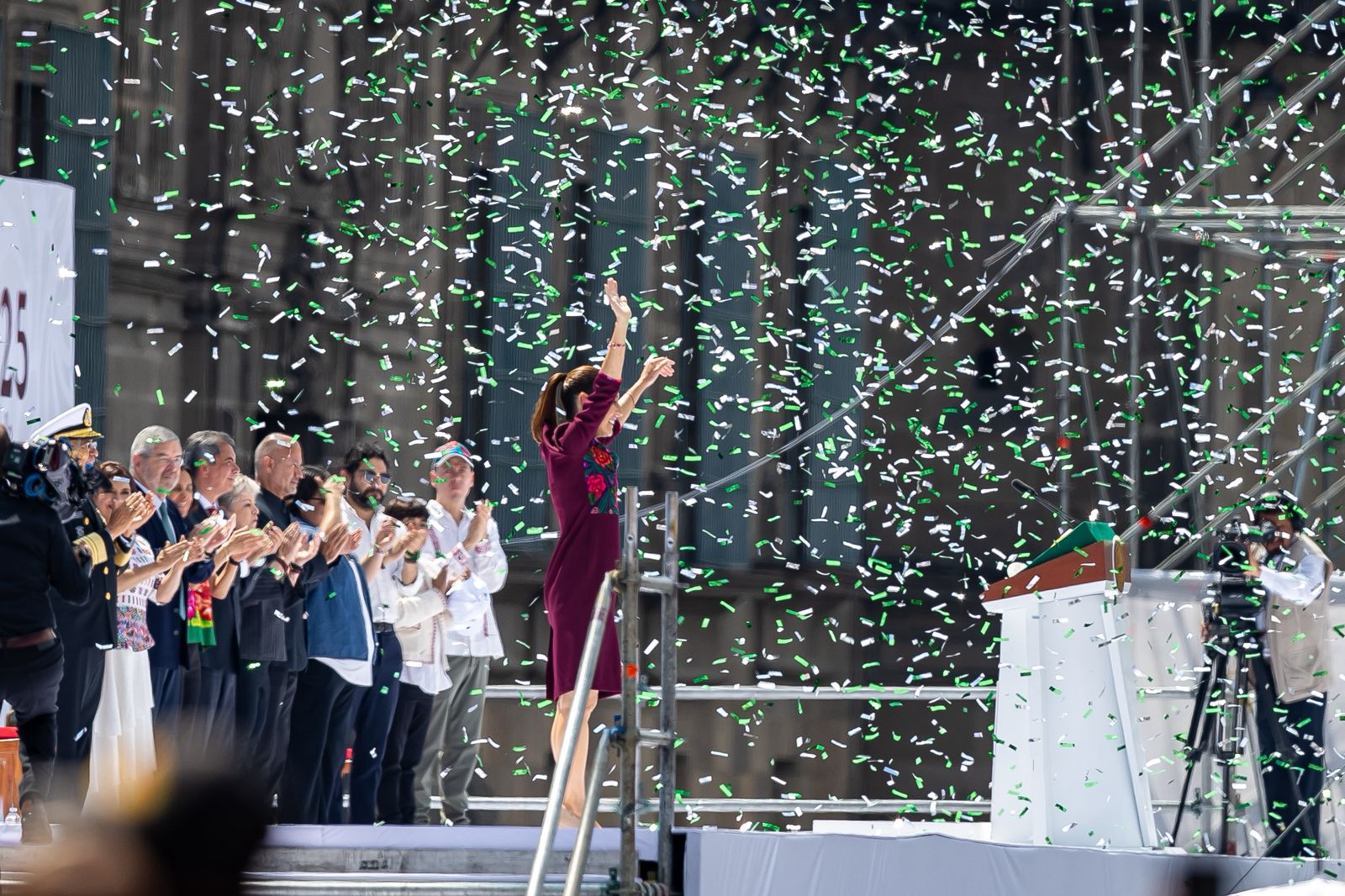 El evento congregó a los titulares del gabinete federal, gobernadores, legisladores, representantes del Poder Judicial y miles de ciudadanos que se sumaron a la celebración del primer año de la administración federal bajo el lema “La Transformación Avanza”.