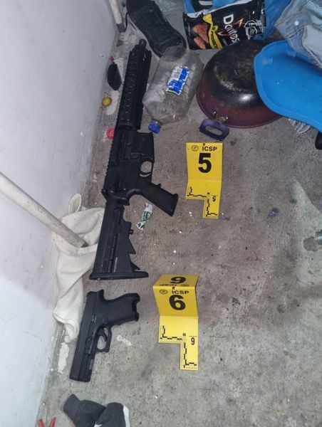 Encuentran armas y drogas en Los Cometas #Juárez La Agencia Estatal de Investigaciones llevó a cabo un cateo en un domicilio de la calle Sol en la colonia Los Cometas donde se encontraron cuatro bolsas de plástico transparente con hierba verde y seca en su interior, cartuchos calibre 9 milímetros y otro cartucho del mismo calibre con la leyenda Águila, así como un arma larga, una corta y 18 cartuchos Calibre 223, 22 cartuchos calibre 9 milímetros, 3 cartuchos calibre 25 con la leyenda Águila, doce bolsas de plástico transparente con hierba verde y seca en su interior y una credencial.Fue el resultado del cateo realizado en la colonia Los Cometas del municipio de Juárez sin reportar personas detenidas. Todo lo asegurado fue puesto a disposición de la Fiscalía General de Justicia del Estado de Nuevo León, para las investigaciones correspondientes.