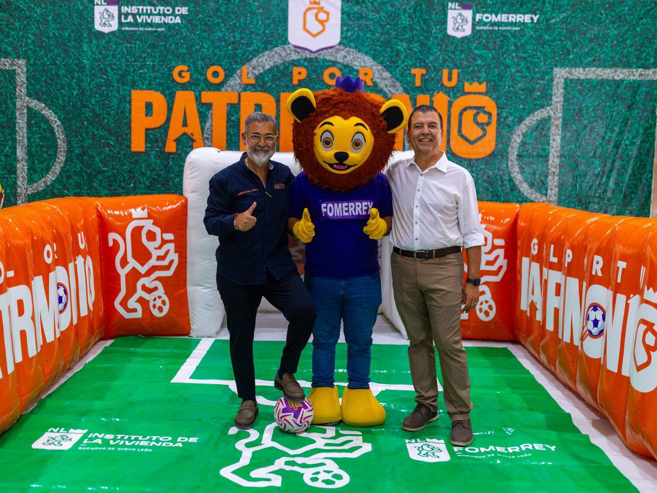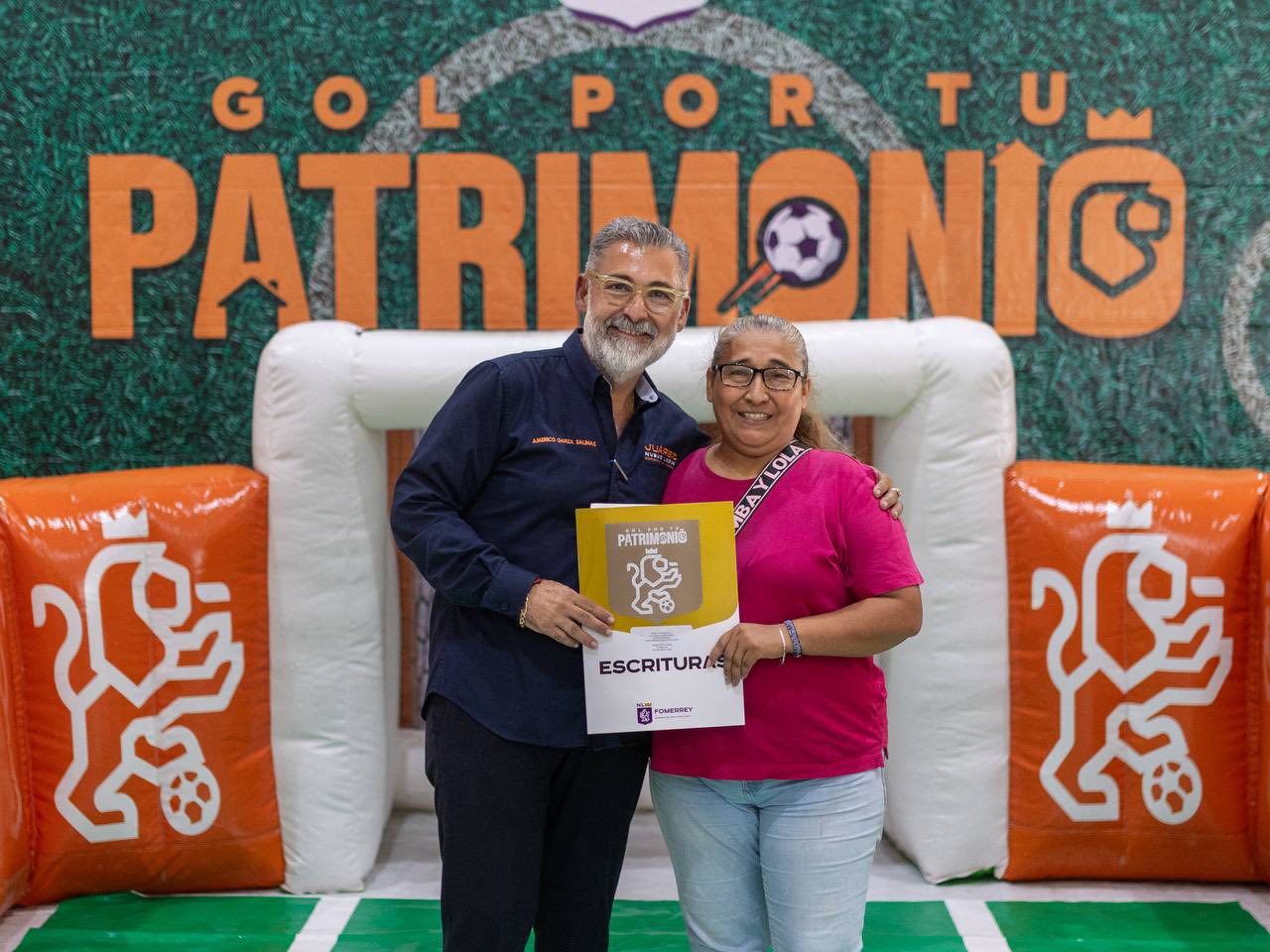 Durante el evento, los beneficiarios participaron en la dinámica “Gol por tu Patrimonio”, que consistió en lanzar un penalti simbólico para recibir sus escrituras, en sintonía con la próxima celebración del Mundial de Fútbol 2026, del cual Nuevo León será sede.