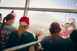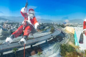 Cómo cada año, Santas y superhéroes descendieron por los vitrales del Hospital Regional Materno Infantil para que los pequeños vivieran un momento de diversión y alegría.