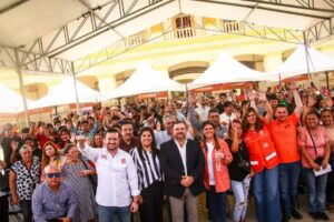 El alcalde Miguel Salazar expresó su agradecimiento a Martha Herrera, titular de la Secretaría de Igualdad e Inclusión, por su compromiso con el bienestar de las comunidades. Asimismo, reconoció a la empresa Arca Continental por sumarse a esta jornada con su programa Agua para la Comunidad, a través del cual se distribuyó agua potable en beneficio de las familias