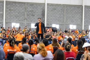 Cadereyta Jiménez, Nuevo León.- El Gobernador Samuel Alejandro García Sepúlveda encabezó en Cadereyta Jiménez la entrega de tarjetas del programa “Ayudamos a las Mujeres”, una iniciativa que impulsa la autonomía económica de cuidadoras y jefas de familia mediante un apoyo mensual de 2 mil pesos y acompañamiento integral.