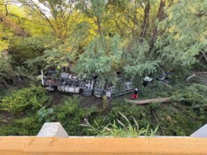 Un tráiler que transportaba tubos de acero se precipitó fuera de la vía, lo que ocasionó que el conductor perdiera la vida en el lugar de los hechos.