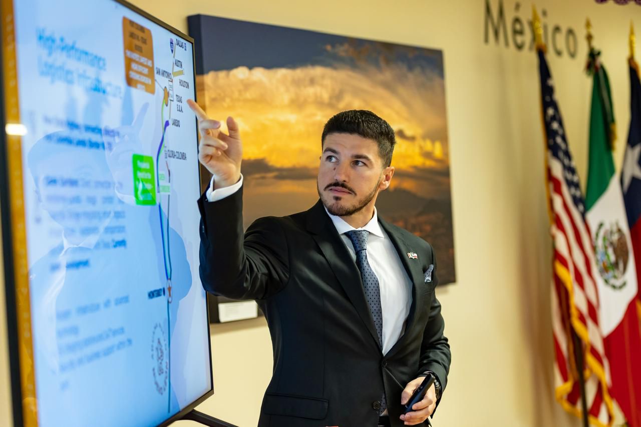 Frente al Cónsul General de México en Dallas, Texas, Luis Rodríguez Bucio, y a las Cámaras de Comercio de la región Dallas–FortWorth–Arlington, el Mandatario estatal señaló que este triángulo incluye 20 partidos de la Copa del Mundo en un radio de 800 kilómetros, en el que destacan el Estadio de Monterrey con 2 partidos de playoff y 4 partidos de fase regular; el Houston Stadium con 7 partidos; el Dallas Stadium con 9 partidos, en el que se incluye la semifinal.
