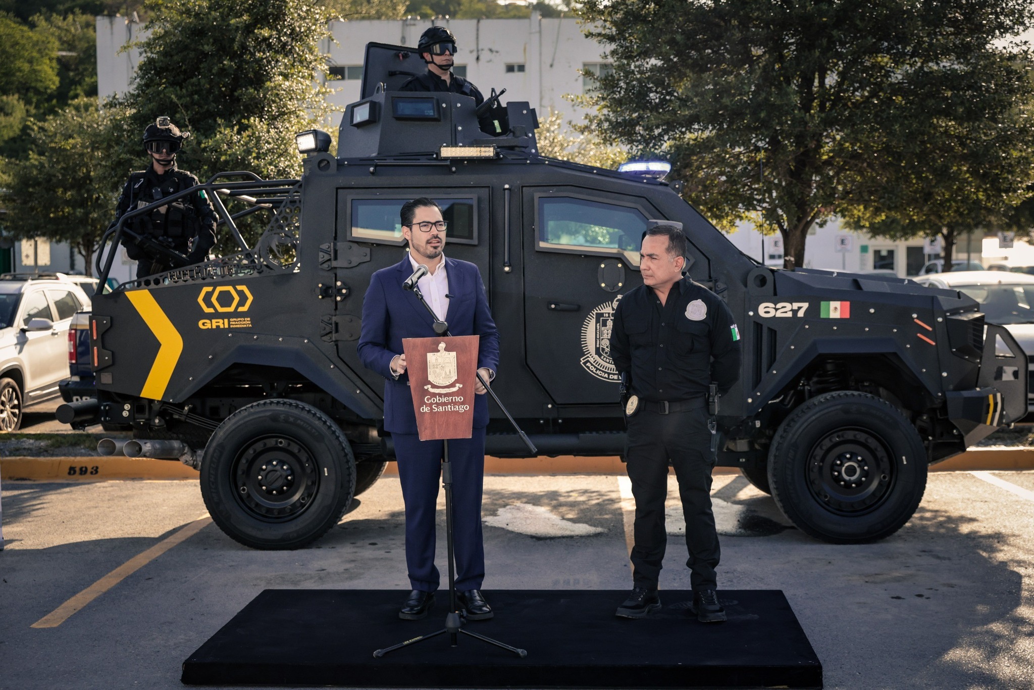 “Hoy presentamos esta ‘Black Mamba’ esta patrulla que se suma a la unidad de vehículos blindados de Santiago. Yo les quiero decir que Santiago es el único municipio del estado y de la zona metropolitana que cuenta con una división de equipos blindados”, dijo el Alcalde al hacer la entrega de la unidad.