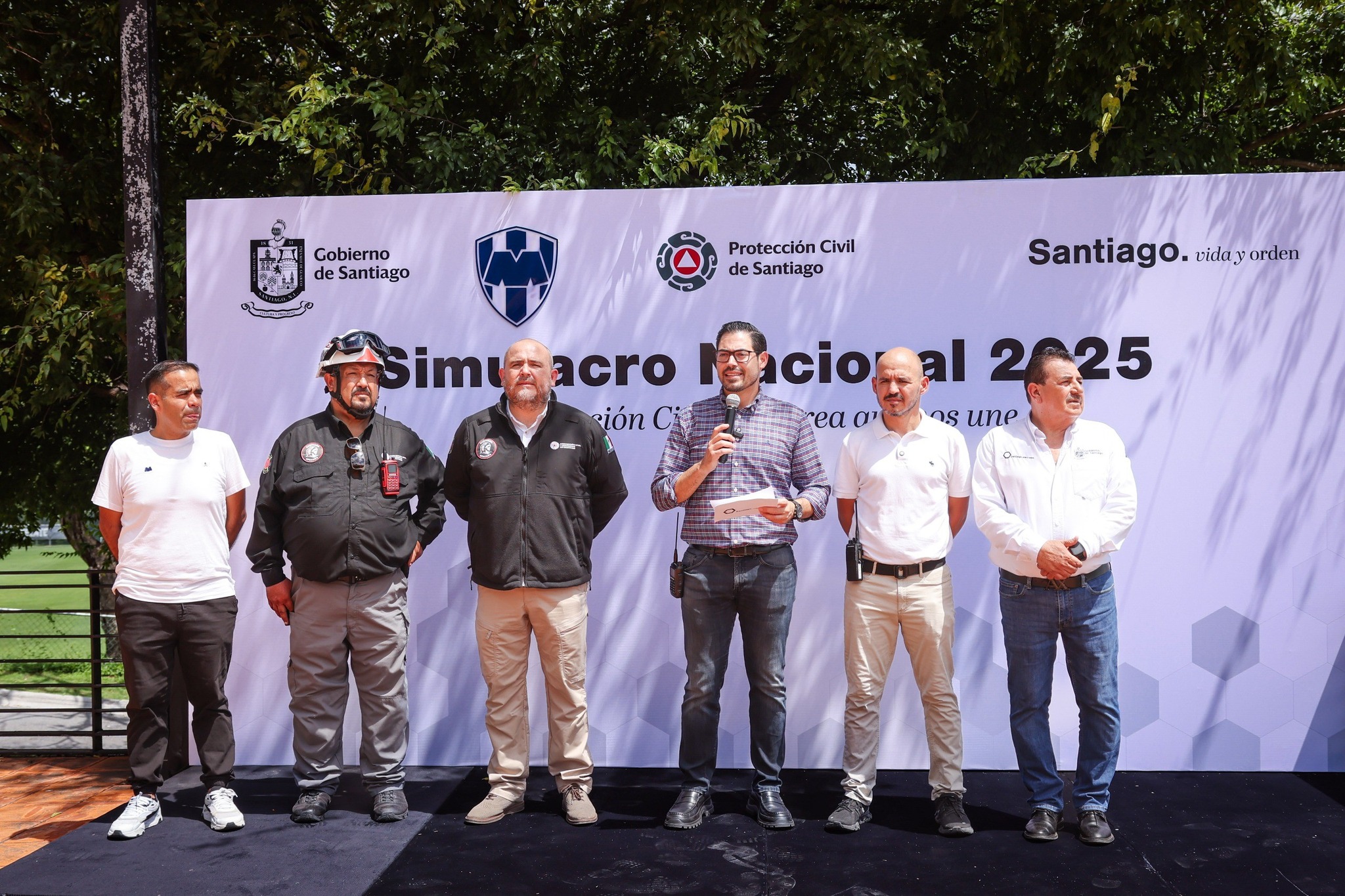 Con el objetivo de estar preparados ante cualquier eventualidad, el Presidente Municipal de Santiago, David de la Peña Marroquín, en coordinación con los elementos de Protección Civil Santiago, se sumaron al Segundo Simulacro Nacional 2025, realizado en las instalaciones del Club de Fútbol Monterrey en El Barrial dado que será una de las sedes del la próxima Copa Mundial de la FIFA 2026.