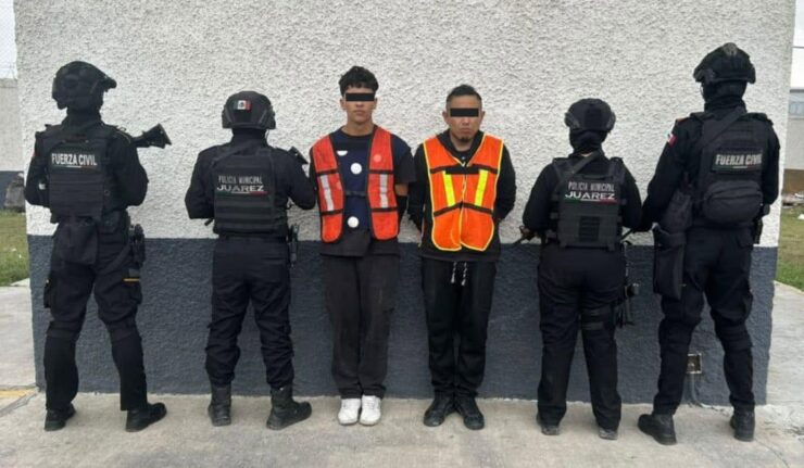 POLICÍAS DE JUÁREZ DETIENEN A DOS HOMBRES ARMADOS CON DROGA EN LA COLONIA VALLE REAL