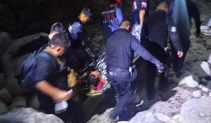 JUÁREZ, N.L. - Elementos del Grupo de Operaciones Especiales (GOE) de la Secretaría de Seguridad y Protección Ciudadana de Juárez, en coordinación con Protección Civil, brindaron apoyo en el rescate y traslado de dos personas lesionadas en la zona de senderismo del Cerro Agujerado, en la colonia Bosques de la...