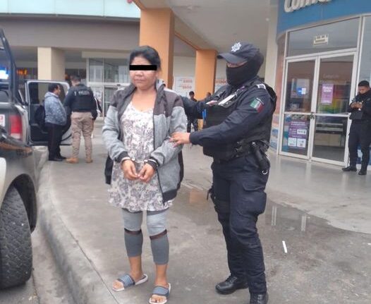 Detiene la policía a femenina por el delito de robo a comercio en la colonia Valle de Juárez.Elementos de la Secretaría de Seguridad Pública de Juárez recibieron un reporte por medio del C4 Municipal