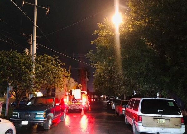 Personal de la Secretaría de Servicios Públicos Básicos, lleva acabo algunas labores en calles del fraccionamiento Rincón de las Huertas con el fin de detectar fallas en diferentes circuitos de alumbrado público restableciéndose la mayor parte del servicio