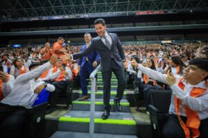 La Ceremonia se llevó a cabo en la Arena Monterrey, donde el Mandatario estatal destacó que el objetivo es seguir apostando por la juventud neoleonesa mediante este modelo de la entidad, el cual ya es primer lugar en América Latina.