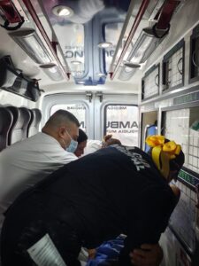 JUÁREZ.- Durante un traslado en la autopista Monterrey–Reynosa, oficiales de la Secretaría de Seguridad y Protección Ciudadana de Juárez, a bordo de la Unidad de Atención Médica de Urgencias, asistieron a una mujer en labor de parto, logrando el nacimiento de un bebé sano y salvo.