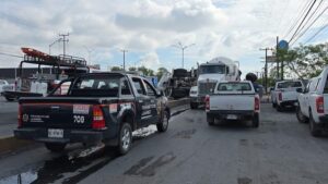 El operador del camión resultó con lesiones leves, mientras que el conductor de la camioneta particular resultó con el tabique desviado, pero se negó a ser trasladado para su atención médica.