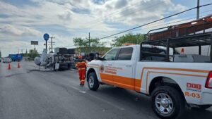 Vuelca revolvedora de concreto en carretera San Roque en Juárez, dejó a dos personas lesionadas.